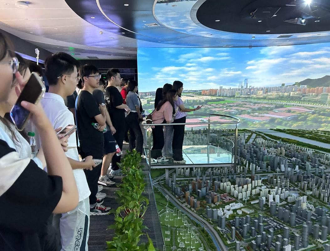 园区内现代建筑群错落有致,每一砖一瓦都蕴含着创新和科技的基因。雪球官网科技IT菁英暑期实训营的学员们怀揣着对科技的无限憧憬步入研创园展厅。展厅内部设计充满科技感,一块块巨大的模型和显示屏映入眼帘,生动展现了研创园的科技规划,以及从梦想走向现实的开展历程。