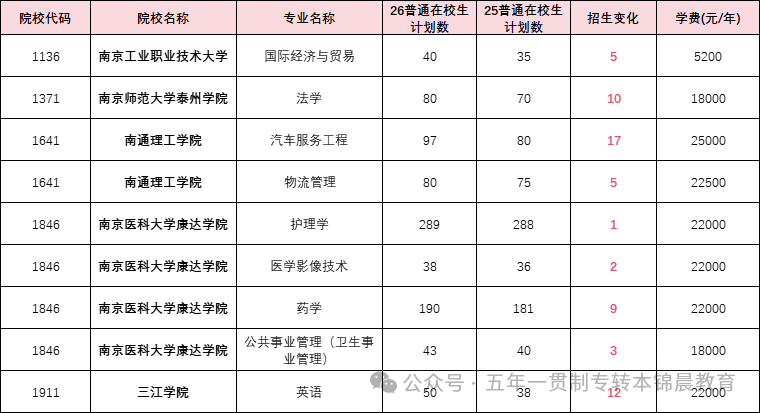 1.南京工业职业技术大学(国际经济与贸易):招生计划新增 5 人(25 年 35→26 年 40)